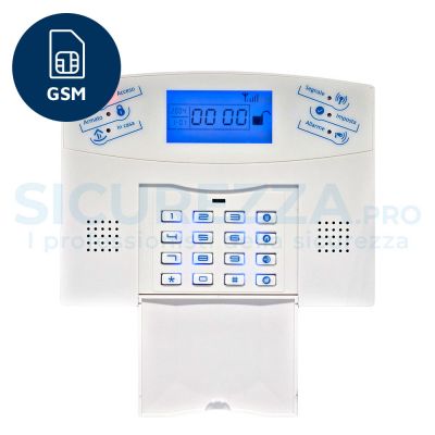 Centralina di allarme in italiano con combinatore telefonico GSM integrato, supporto per comandi telefonici ed SMS, esclusivo modulo interno per la programmazione veloce, batteria interna in caso di blackout. 99 zone logiche via radio, ognuna con infiniti sensori memorizzabili - 7 zone logiche via filo (di cui una riservata per l'utilizzo di chiavi elettroniche filari), ognuna con infiniti sensori filari gestibili (l'alimentazione per i sensori filari viene fornita direttamente dalla centralina) - Programmazione zone: interni, esterni, perimetrali, porte, finestre, gas, acqua, fumo, 24 ore, allarme medico e/o panico e/o mancanza energia - Parzializzazione a livello di singola zona - Memorizzazione di 6 numeri di telefono anche cellulari per l'avviso eventi - ulteriori 3 numeri di cellulari per l'invio di SMS di allarme - Messaggio vocale personalizzabile oltre ai messaggi in sintesi vocale già presenti e preimpostati - Funzione di telecontrollo ed ascolto ambientale - Riconoscimento toni dtmf - Autonomia in assenza di rete grazie alla batteria tampone interna - Morsettiera di collegamento per sensori e avvisatori - Allarme sms per alimentazione assente o in esaurimento -